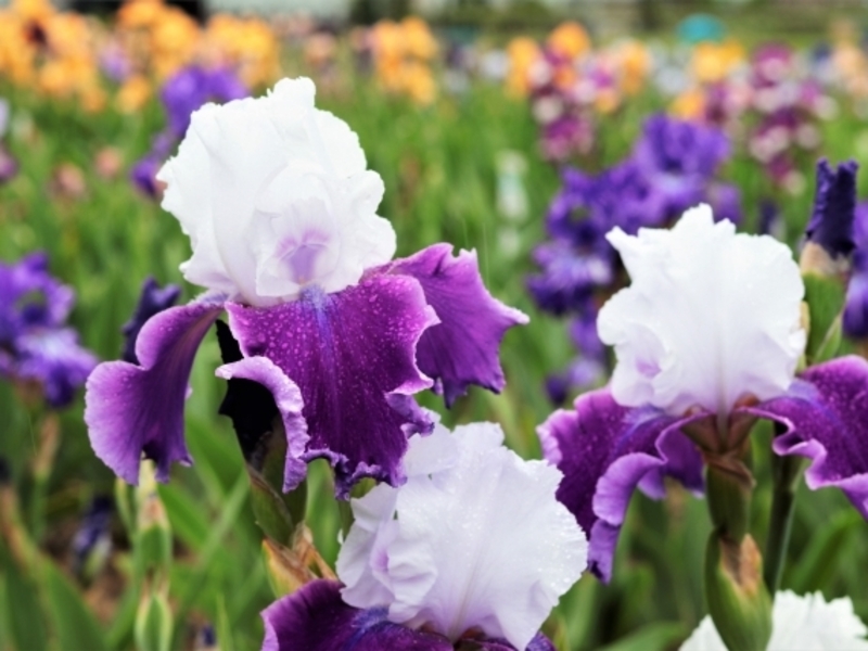ジャーマンアイリスは、中東原産のアヤメ科の植物で、紫やピンク・黄色など色とりどりの花を付けることから、「虹の花」とも呼ばれ、例年5月上旬からジャーマンアイリス園(約1000種、10万株)がオープンします。