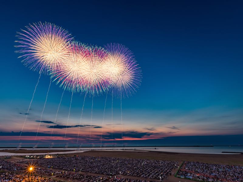 クライマックスの大花火「柏崎市民一同」まで1万6千発の花火が夜空と日本海を埋め尽くします!